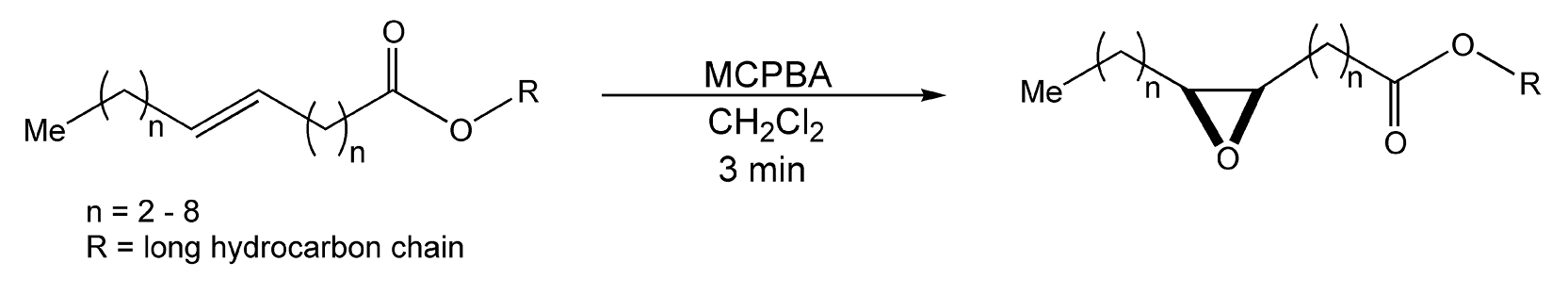 Peracids are powerful oxidizing agents. Conventional use of m-chloroperbenzoic acid (MCPBA) on carbon– carbon double bonds forms epoxides, but these reactions are very long and usually take place at 0 °C. With microwave irradiation, epoxides are provided in only three minutes with 99% product yield (Scheme 101).570