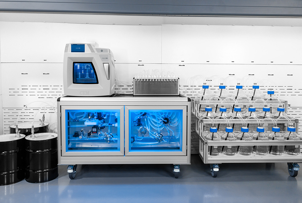The Liberty PRO shares the same chemistry principles as CEM’s Liberty R&D platforms, ensuring direct transferability from discovery to clinical manufacturing.Its large-capacity reaction vessels, precise reagent metering, and consistent microwave delivery ensure reliable scale-up. This reduces the time needed for technology transfer for pharmaceutical companies and enables CMOs to quickly onboard new client sequences with high confidence.