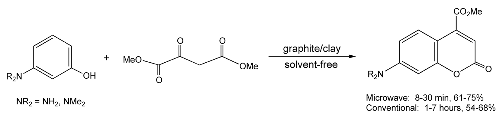625. Frere, S.; Thiery, V.; Besson, T. “Microwave acceleration of the Pechmann reaction on graphite/montmorillonite K-10: application to the preparation of 4-substituted-7-amino-coumarins.” Tetrahedron Lett. 2001, 42, pp. 2791-94 and Fifth International Electronic Conference on Synthetic Organic Chemistry (ECSOC-5) 2001, E0015 (www.mdpi.net).