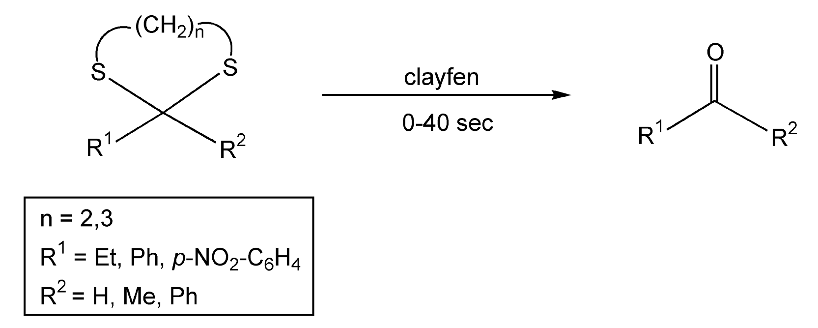 684. Varma, R.S.; Saini, R.K. “Solid state dethioacetalization using clayfen.” Tetrahedron Lett. 1997, 38, pp. 2623-24.