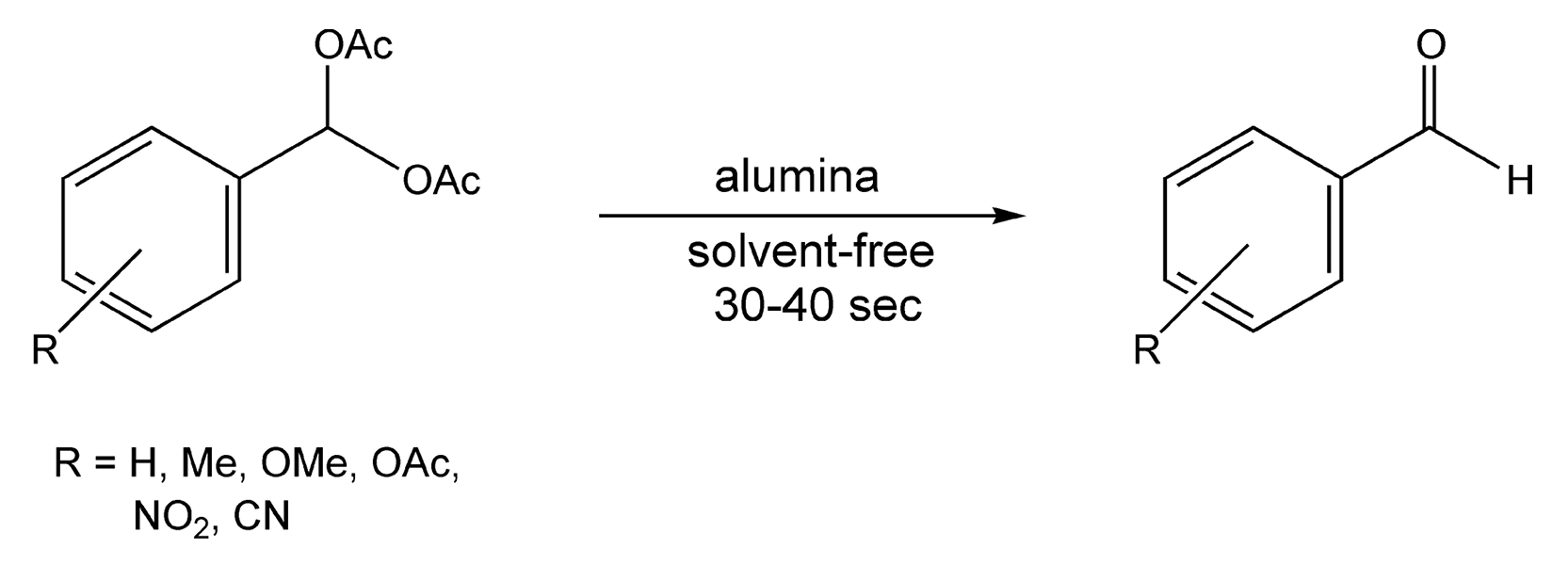 689. Varma, R.S.; Chatterjee, A.K.; Varma, M. “Alumina-mediated deacetylation of benzaldehyde diacetates. A simple deprotection method.” Tetrahedron Lett. 1993, 34, pp. 3207-10.