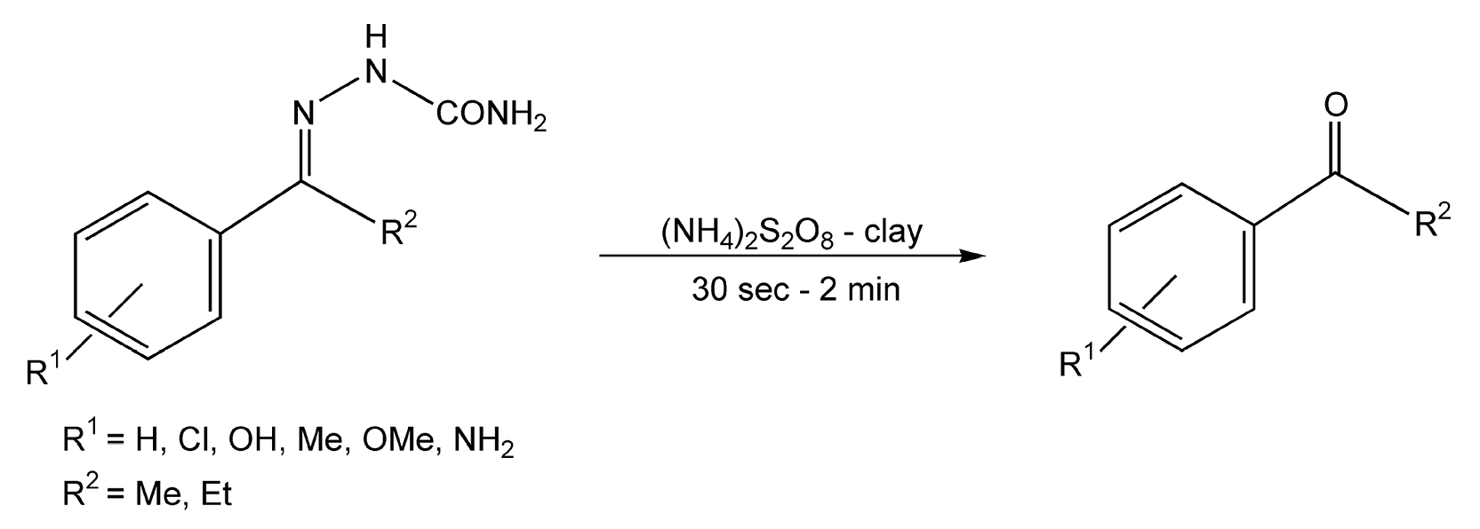 692. Varma, R.S.; Meshram, H.M. “Solid state cleavage of semicarbazones and phenylhydrazones with ammonium persulfate-clay using microwave or ultrasonic irradiation.” Tetrahedron Lett. 1997, 38, pp. 7973-76.