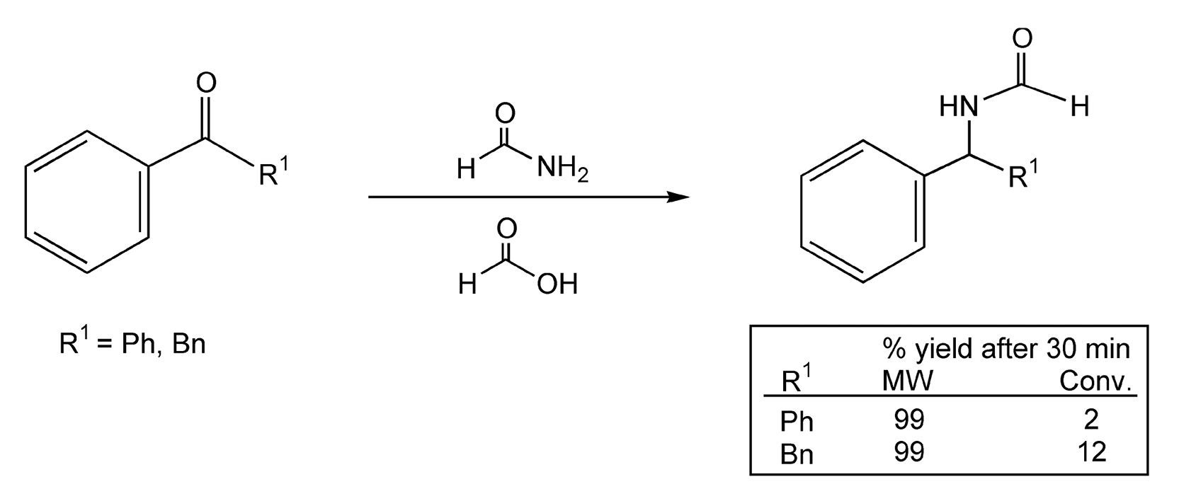 581. Loupy, A.; Monteux, D.; Petit, A.; Aizpurua, J.M.; Dominguez, E.; Palomo, C. “Towards the rehabilitation of the Leuckart reductive amination reaction using microwave technology.” Tetrahedron Lett. 1996, 37, pp. 8177-80.